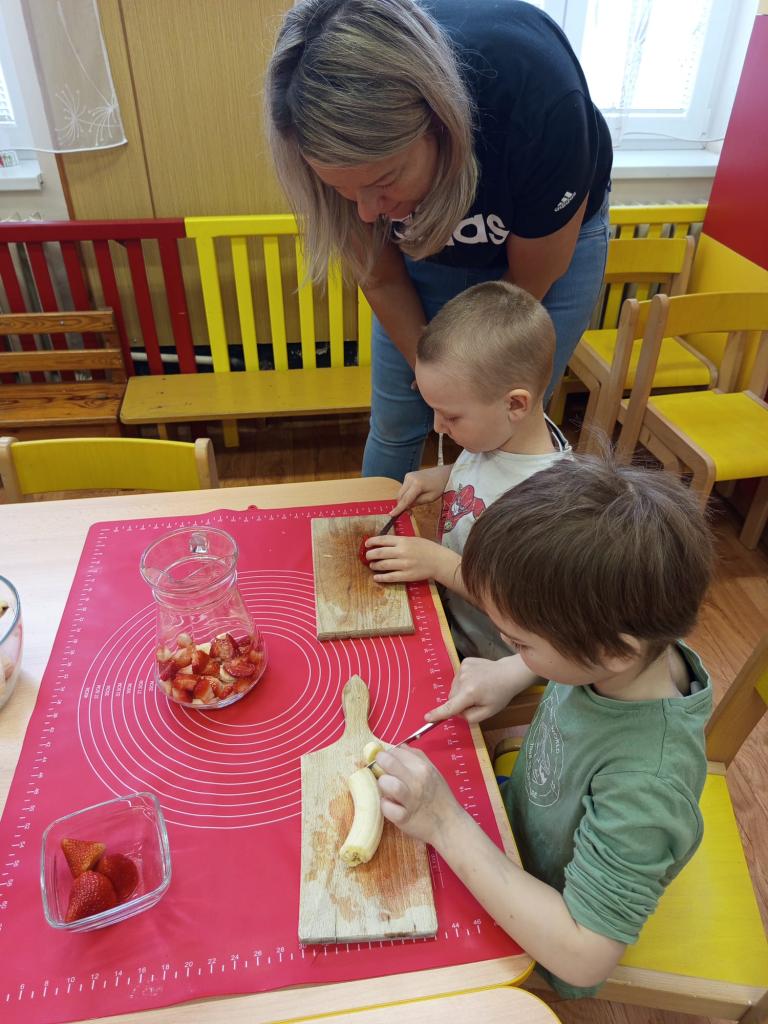 ukázka nápojů a potravin s naší paní vedoucí jídelny